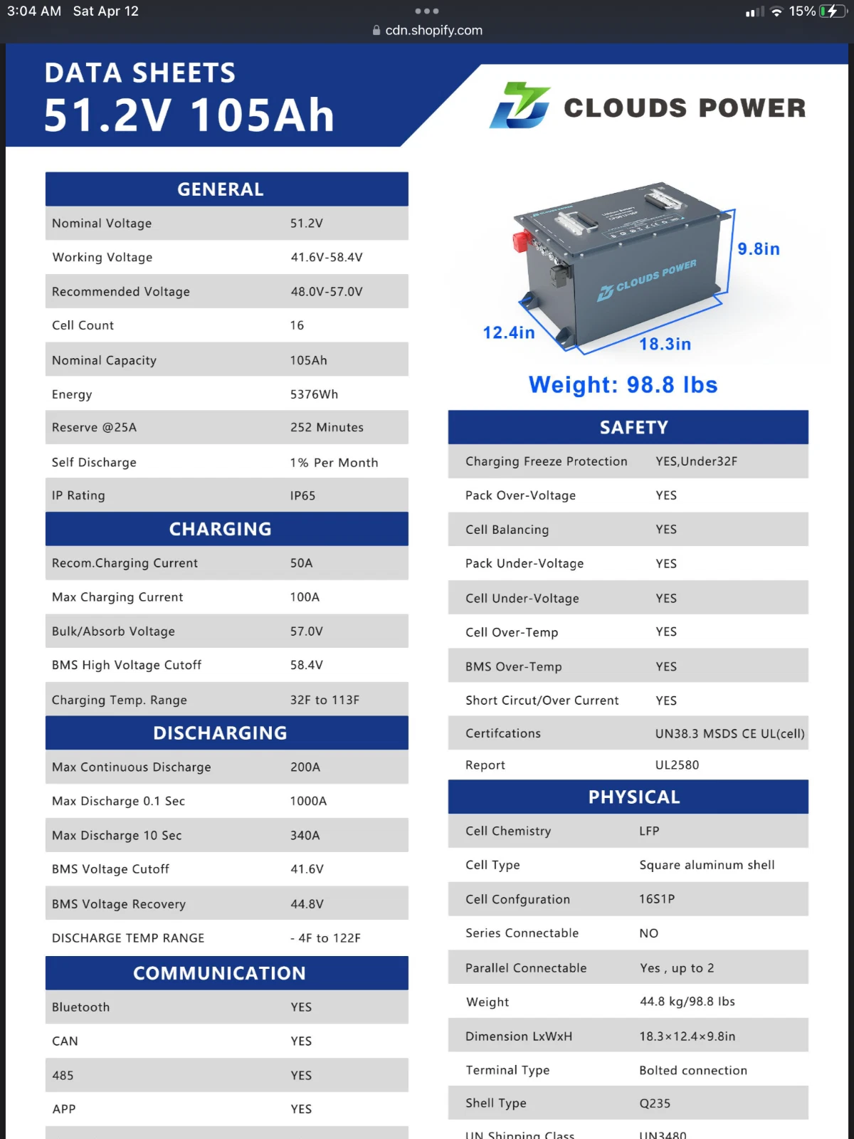 Built-in 200A BMS & Multiple Protection: The LiFePO4 battery built-in 200A BMS provides over-charge/discharge, over-current, high/low temperatures, and short-circuiting protection. The battery case is made of high-strength cold-rolled sheet metal is fireproof, shockproof and IP67 waterproof. With good thermal and chemical stability. Maintenance free, no daily maintenance work and cost.